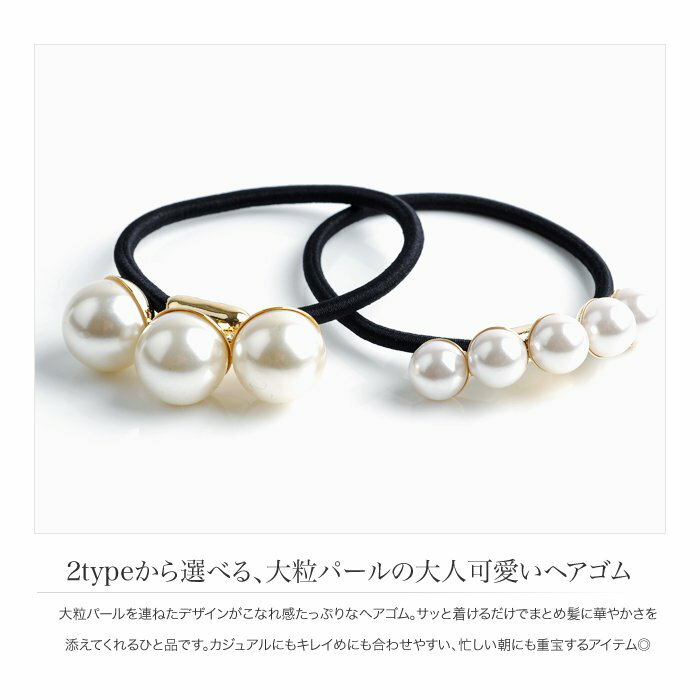 キレイに並んだ大粒パールがこなれ感を演出する、2wayブレスレット/ヘアゴム。